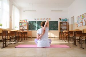 Еду сегодня в школу, чтобы поздравить наших дорогих учителей, в связи с этим не смогу быть с вами сегодня в прямом эфире. Предлагаю повторить последний комплекс Реабилитационной йоги, направленный на всё тело.